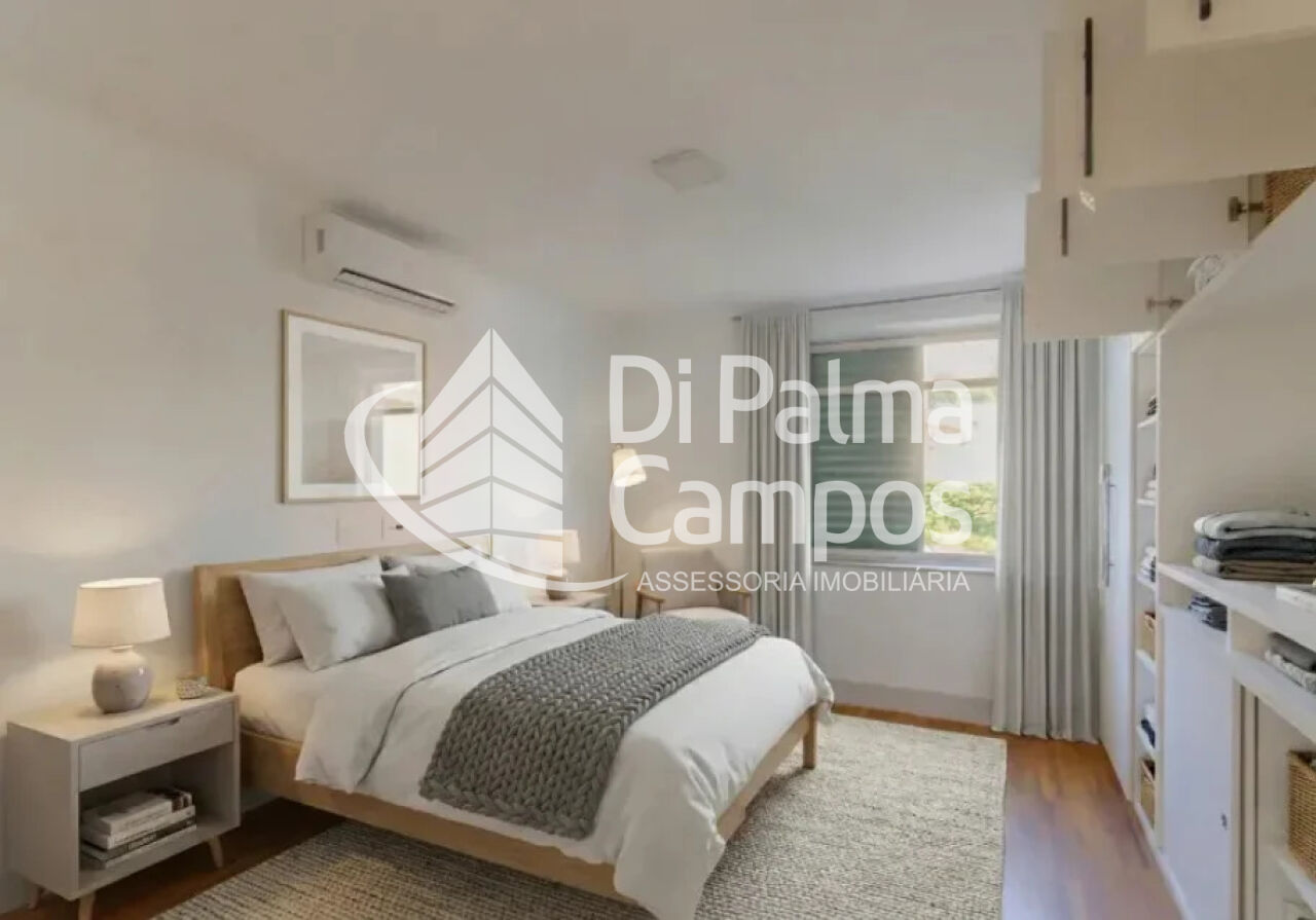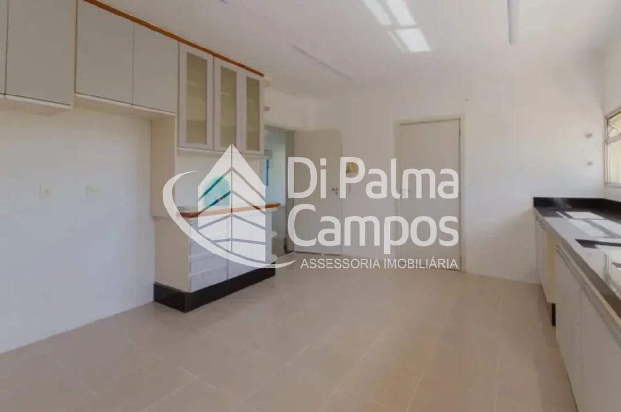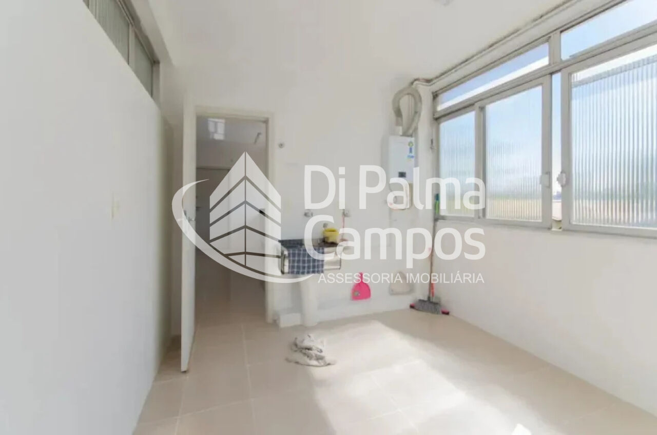 A área social é composta por sala de estar ampla, integrada à circulação do apartamento, com boa iluminação natural e ar-condicionado. A cozinha é independente, conta com armários planejados e acesso direto à área de serviço, além de quarto de serviço.