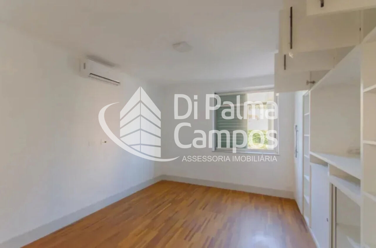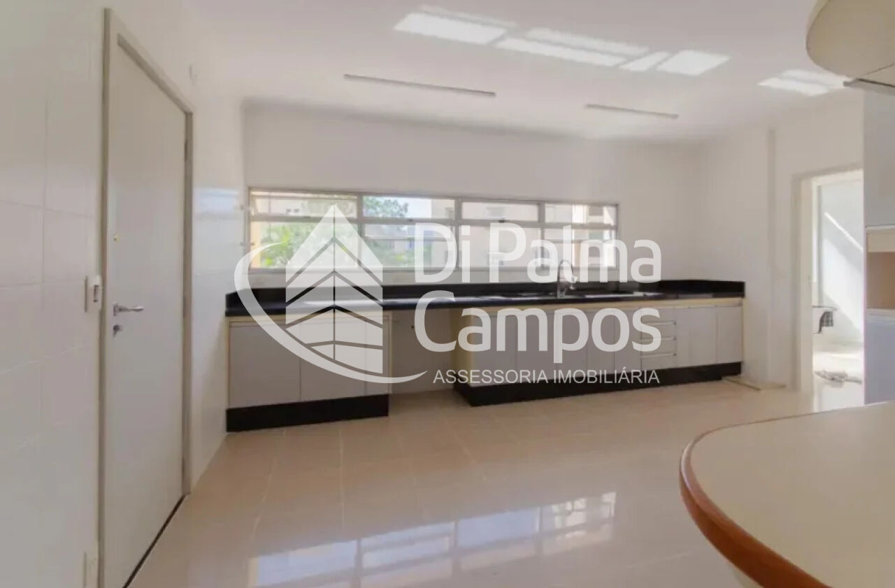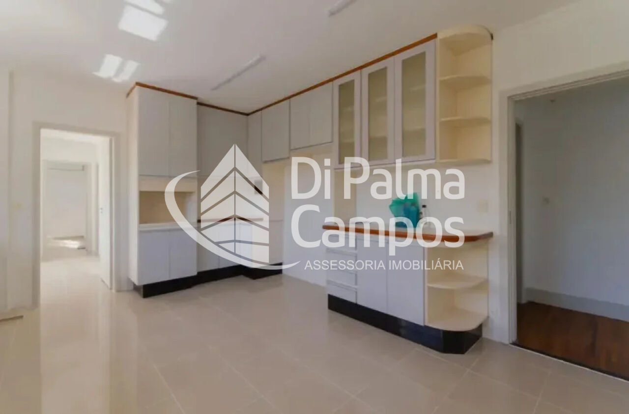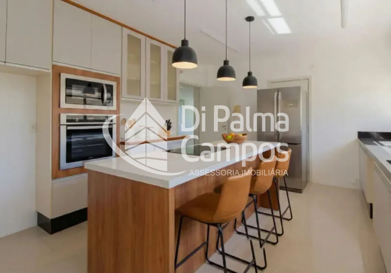 A área social é composta por sala de estar ampla, integrada à circulação do apartamento, com boa iluminação natural e ar-condicionado. A cozinha é independente, conta com armários planejados e acesso direto à área de serviço, além de quarto de serviço.