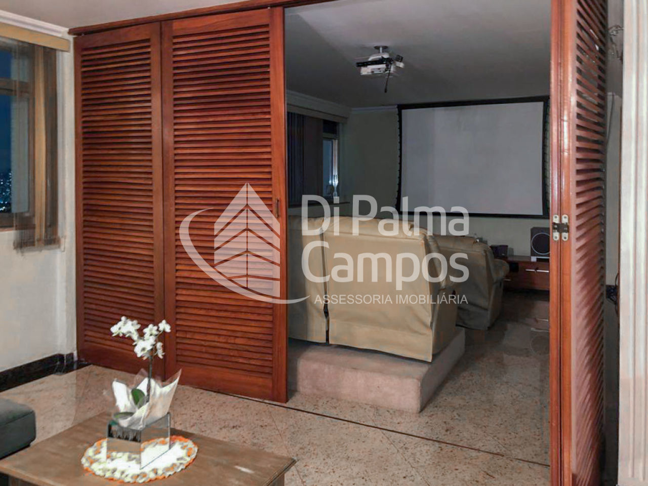 A área social é composta por três salas bem definidas, incluindo sala de estar com três ambientes e lareira, sala de jantar com bar e sala de TV equipada com home theater. A planta permite circulação fluida e integração funcional entre os ambientes, atendendo bem tanto ao uso cotidiano quanto a recepções.