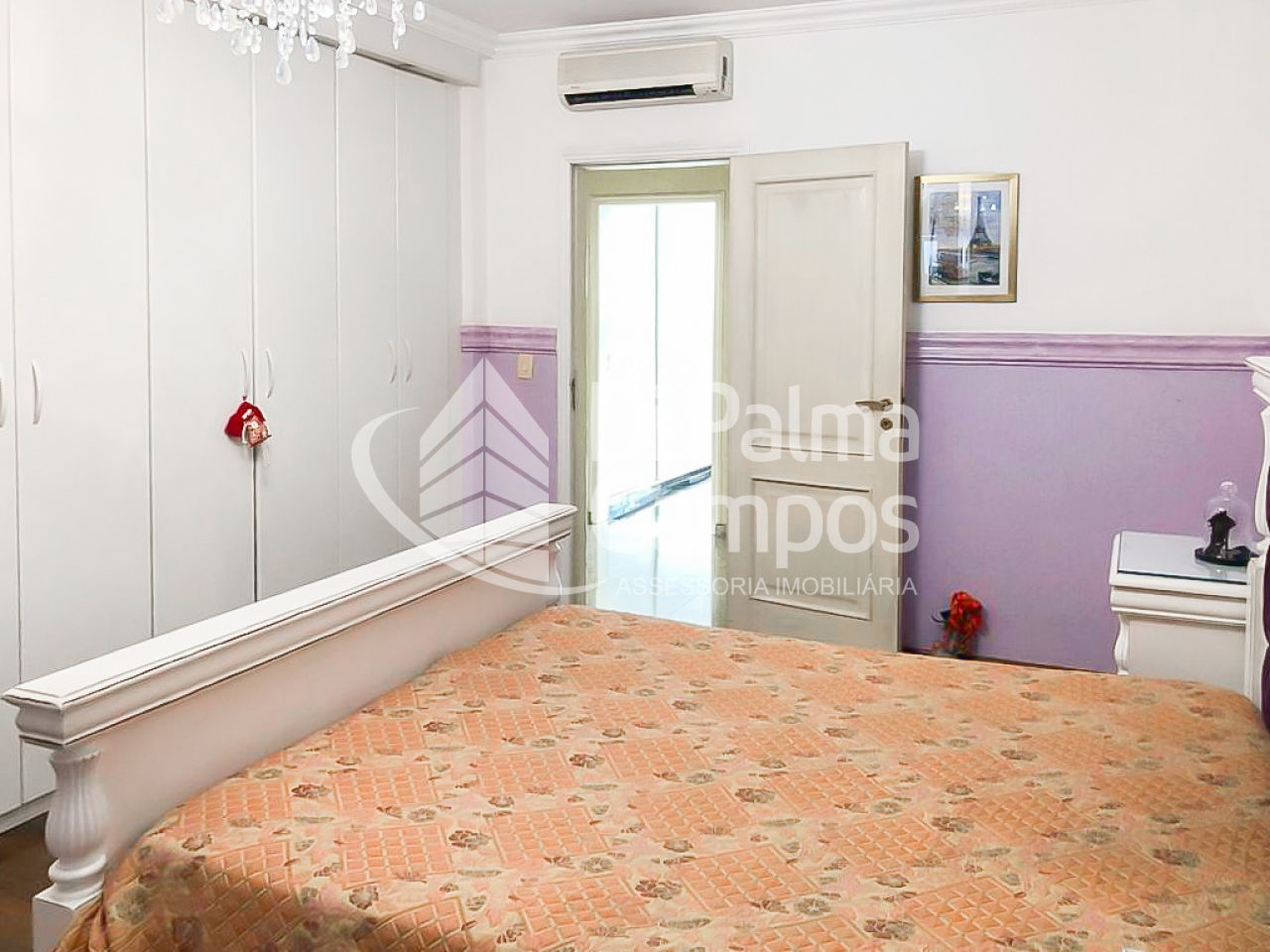 Na área íntima, o apartamento conta com quatro quartos, sendo três suítes. As suítes possuem ar-condicionado, banheira de hidromassagem, closet e armários planejados. Há ainda um escritório, lavabo e banheiros bem distribuídos, garantindo conforto e praticidade no dia a dia.