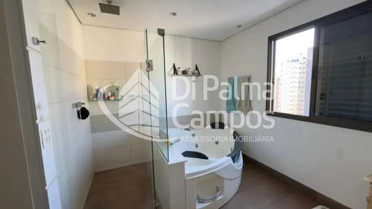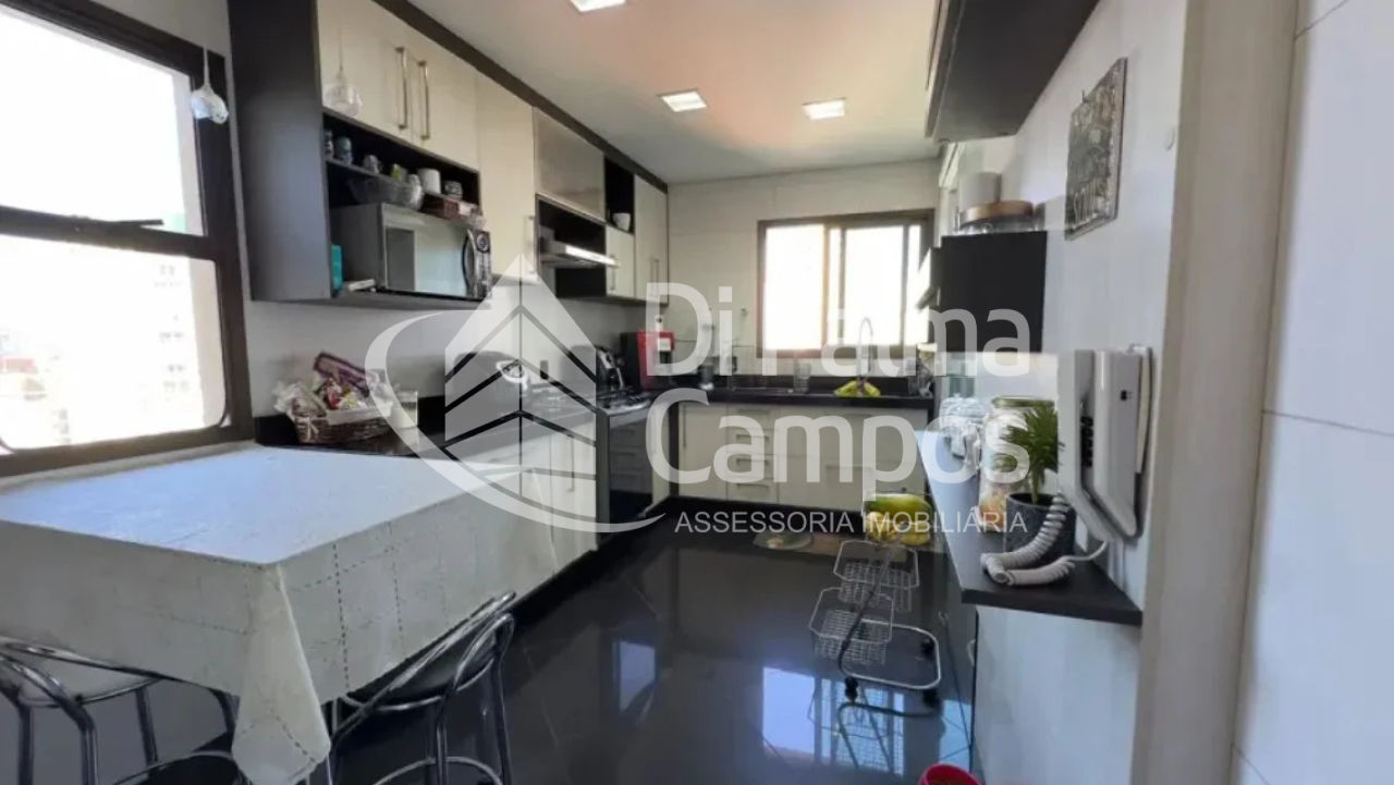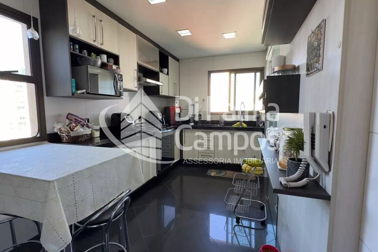 A cozinha conta com armários planejados e área de serviço independente. O imóvel possui terraço com vista exterior, além de diferenciais como banheira, hidromassagem, churrasqueira privativa e aquecimento a gás, garantindo mais conforto no dia a dia.