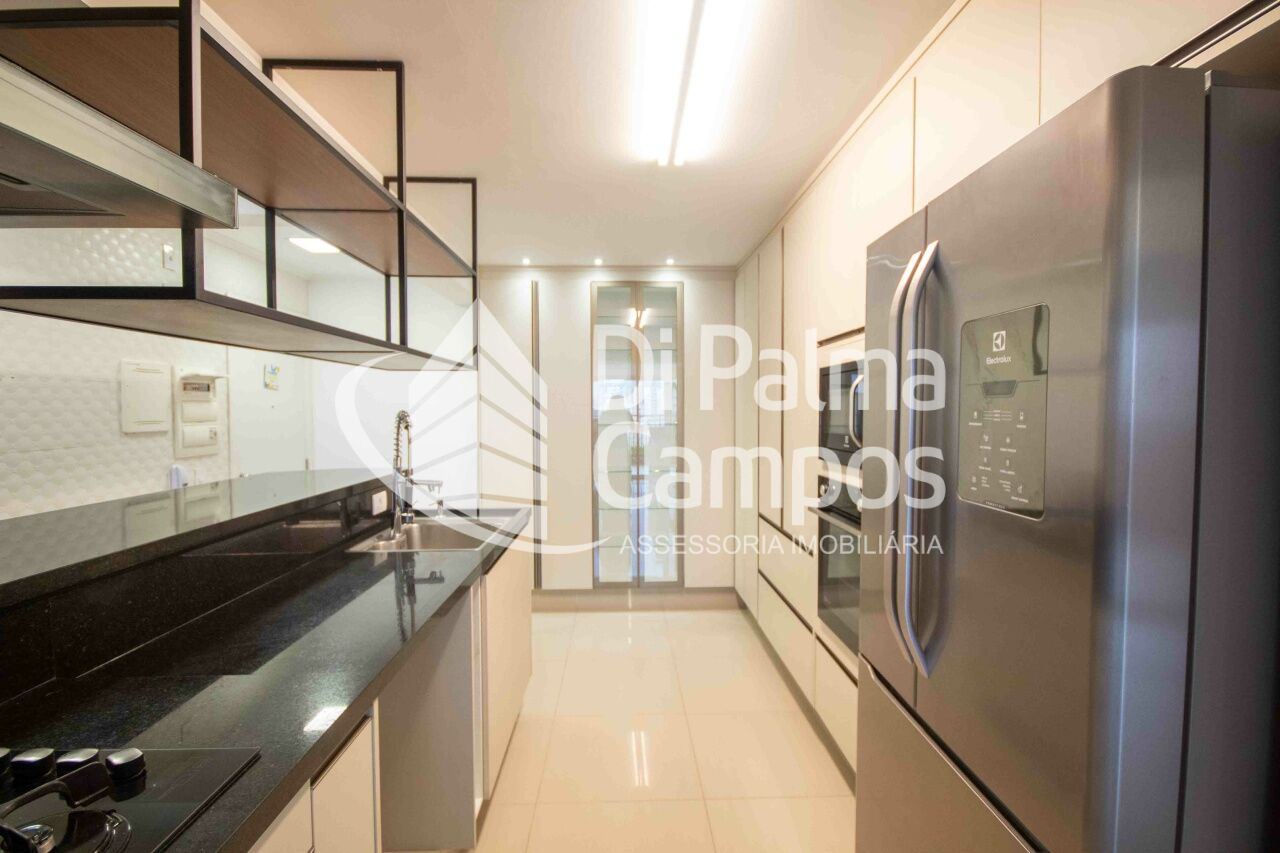 A cozinha é outro ponto forte: moderna, funcional e totalmente planejada, com ilha central, bancadas em pedra escura, eletrodomésticos embutidos, lavabo e integração direta com a área gourmet, criando um fluxo perfeito para o dia a dia e momentos de lazer. A área de serviço é reservada, bem ventilada e equipada com aquecedor. O imóvel conta ainda com 2 vagas de garagem fixas e livres, além de climatização embutida nas áreas sociais, marcenaria sob medida em todos os ambientes, esquadrias amplas com ótima entrada de luz e acabamento de alto padrão que transmite conforto e sofisticação em cada detalhe. O condomínio complementa a experiência com portaria 24 horas, piscina, academia, quadra esportiva, salão de festas, churrasqueira, playground, sauna, salão de jogos, brinquedoteca e áreas verdes bem cuidadas.