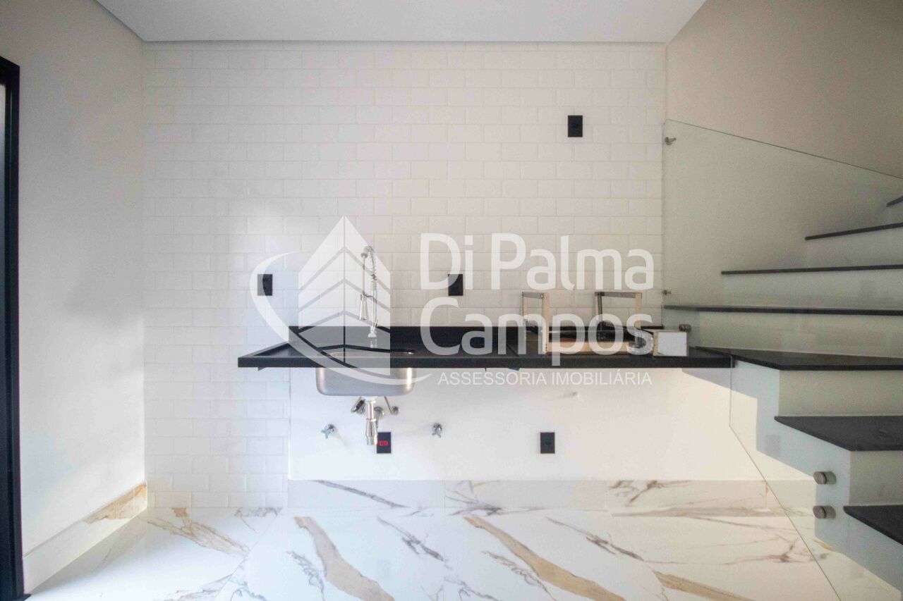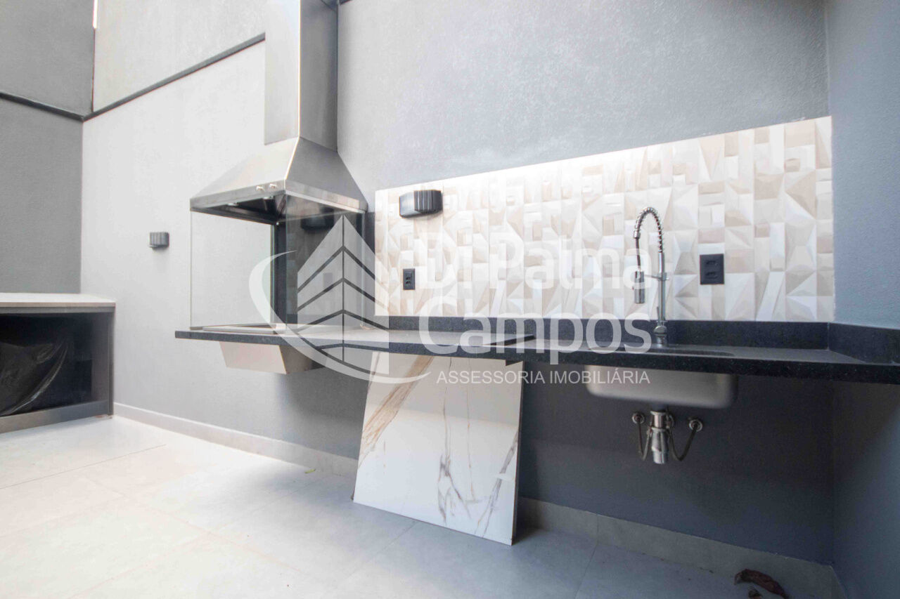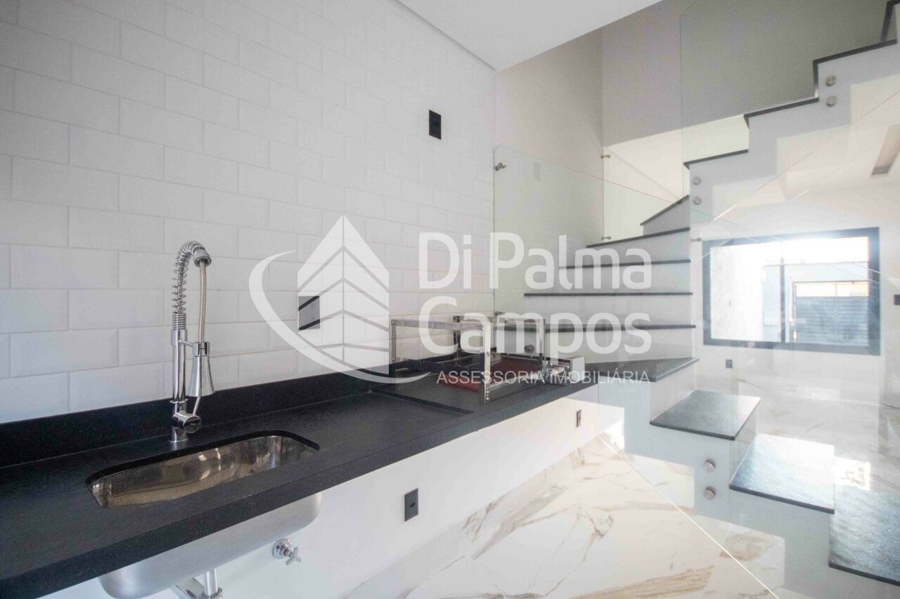 No PAVIMENTO TÉRREO, a garagem de 35,9 m² com portão eletrônico e interfone é metade coberta e comporta a guarda de 2 veículos, proporcionando praticidade e segurança. A entrada leva à sala integrada à cozinha em conceito aberto com 30 m², pé-direito alto (2,6 m) e lavabo, criando um espaço moderno e aconchegante para reunir família e amigos. Nos fundos, o destaque é o quintal gourmet de 22,4 m², equipado com churrasqueira, perfeito para momentos de lazer ao ar livre, além de lavanderia funcional.