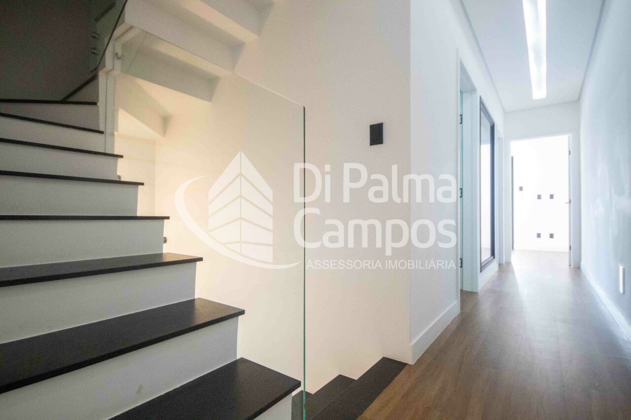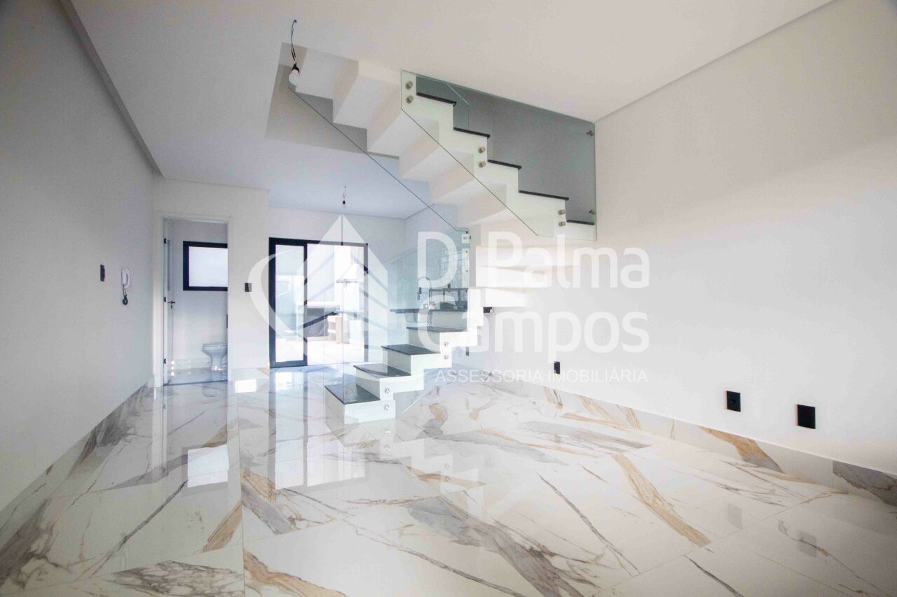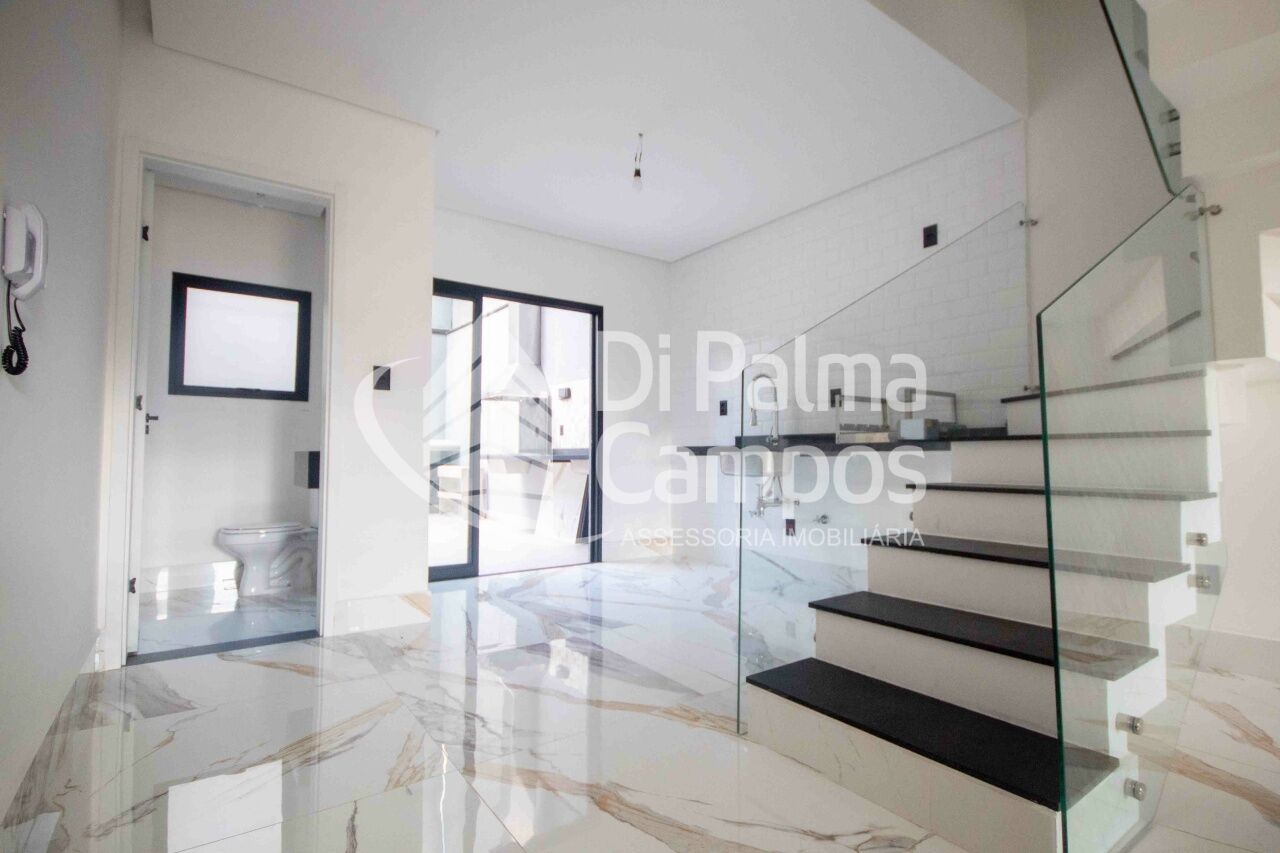 No PAVIMENTO TÉRREO, a garagem de 35,9 m² com portão eletrônico e interfone é metade coberta e comporta a guarda de 2 veículos, proporcionando praticidade e segurança. A entrada leva à sala integrada à cozinha em conceito aberto com 30 m², pé-direito alto (2,6 m) e lavabo, criando um espaço moderno e aconchegante para reunir família e amigos. Nos fundos, o destaque é o quintal gourmet de 22,4 m², equipado com churrasqueira, perfeito para momentos de lazer ao ar livre, além de lavanderia funcional.