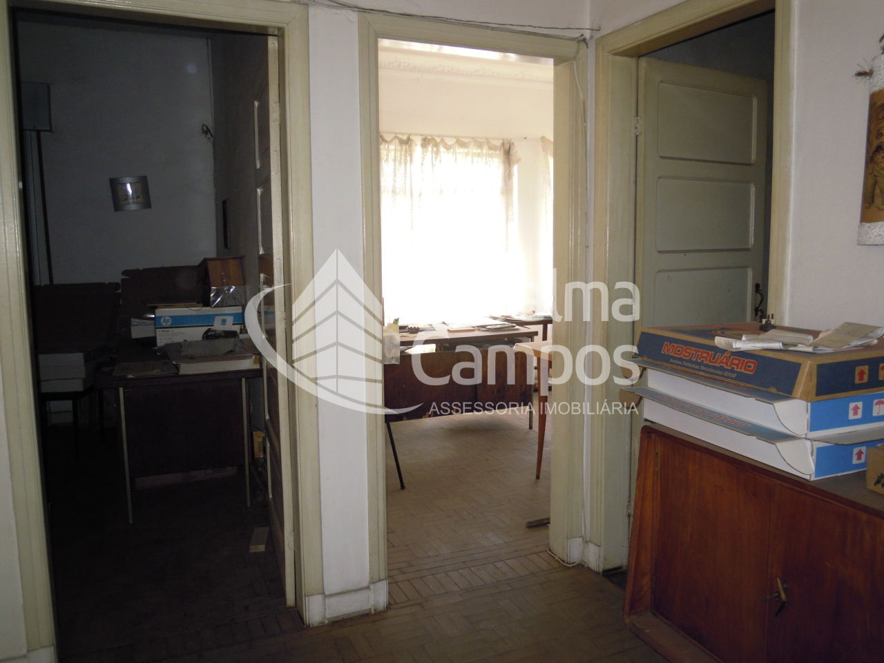 O pavimento superior possui entrada independente e flexibilidade de uso, podendo funcionar como escritório integrado ou separado do térreo, ou ainda como residência. Nesse andar, a casa oferece quatro salas, sendo uma com banheiro privativo e duas com possibilidade de adaptação para quartos, além de cozinha, espaço de despensa, banheiros e área de serviço externa. O pavimento superior necessita de complementação de reforma.