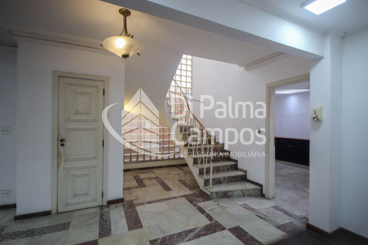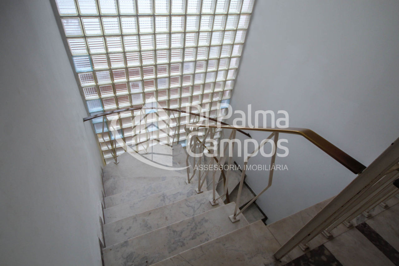 No primeiro andar, encontramos quatro salas bem iluminadas, sendo uma com parede de espelhos e duas com banheiros privativos, oferecendo um layout perfeito para clínicas, escritórios ou consultórios. Toda a área de circulação, bancadas e escadas são acabadas em granito, enquanto o corrimão em bronze adiciona um toque refinado ao ambiente. Todos os ambientes oferecem estrutura para instalação de ar condicionado.