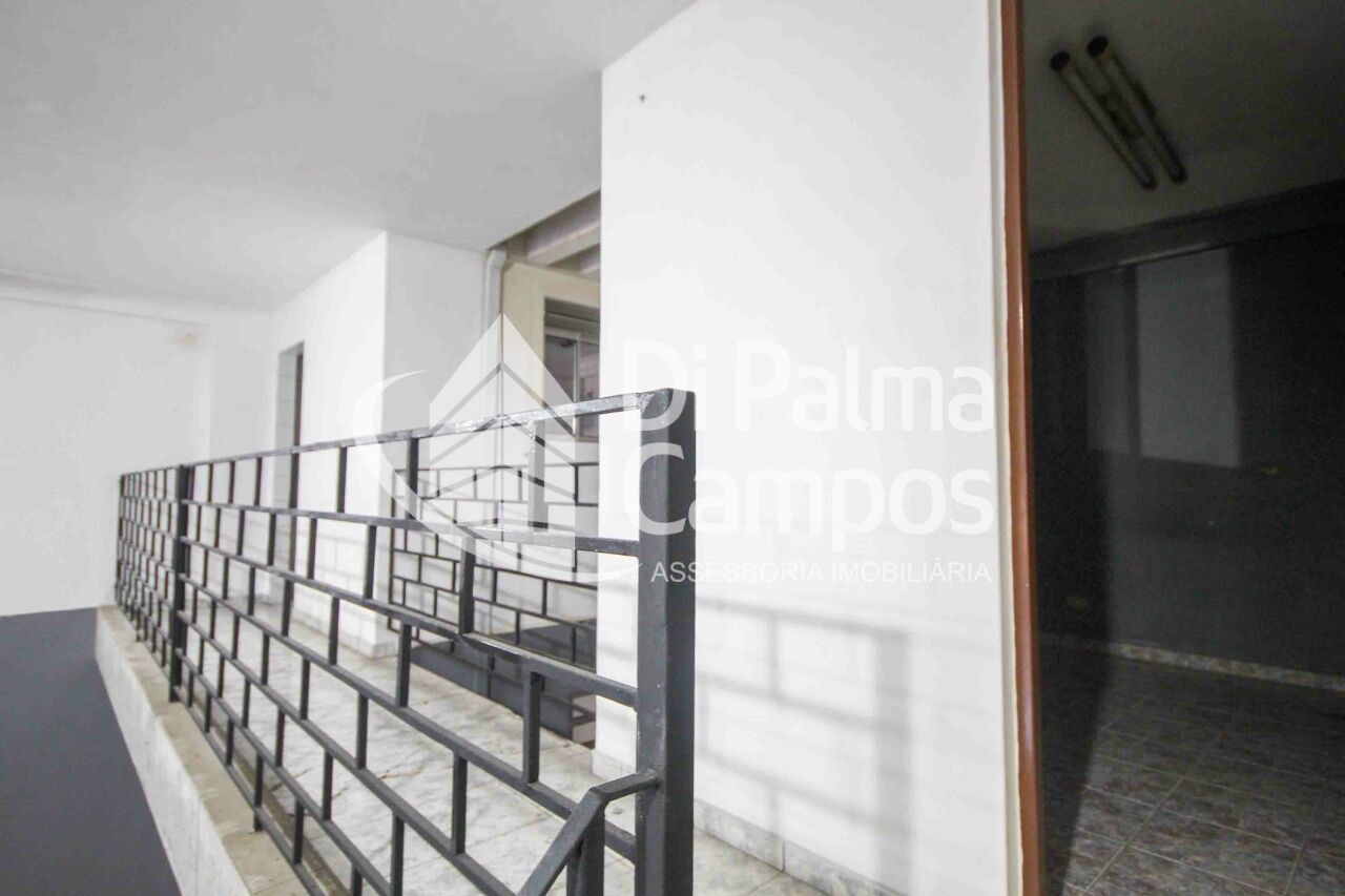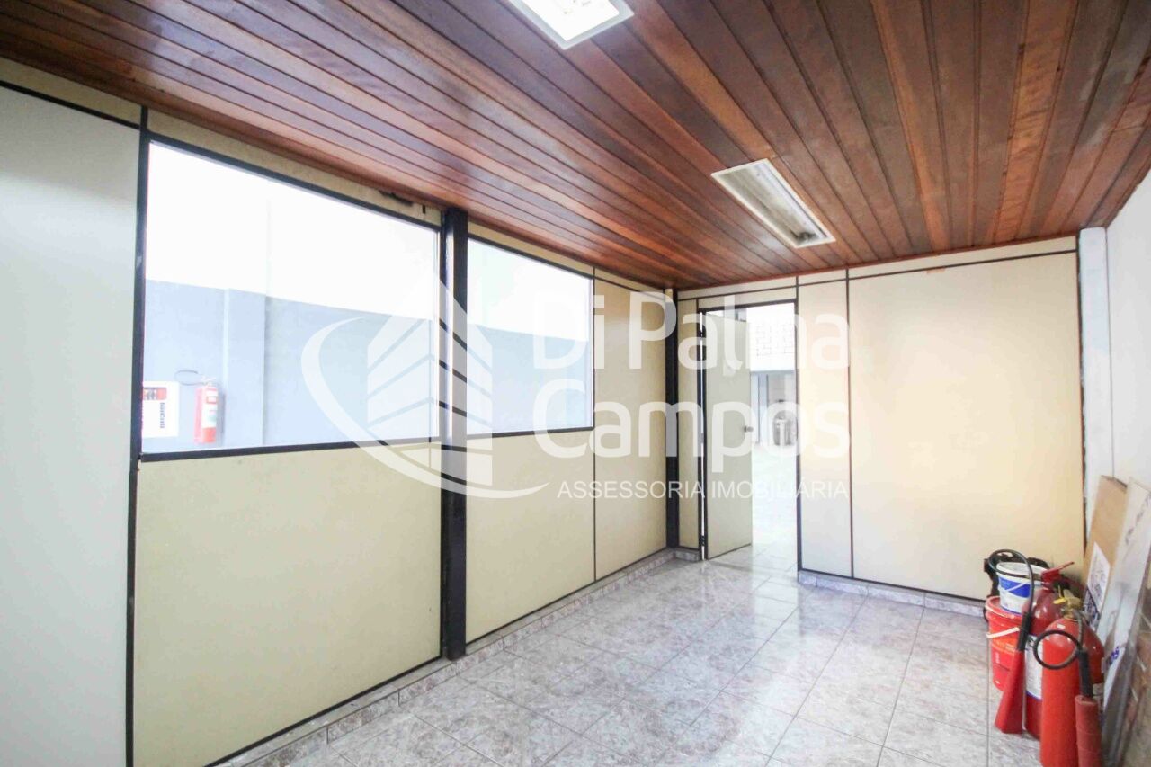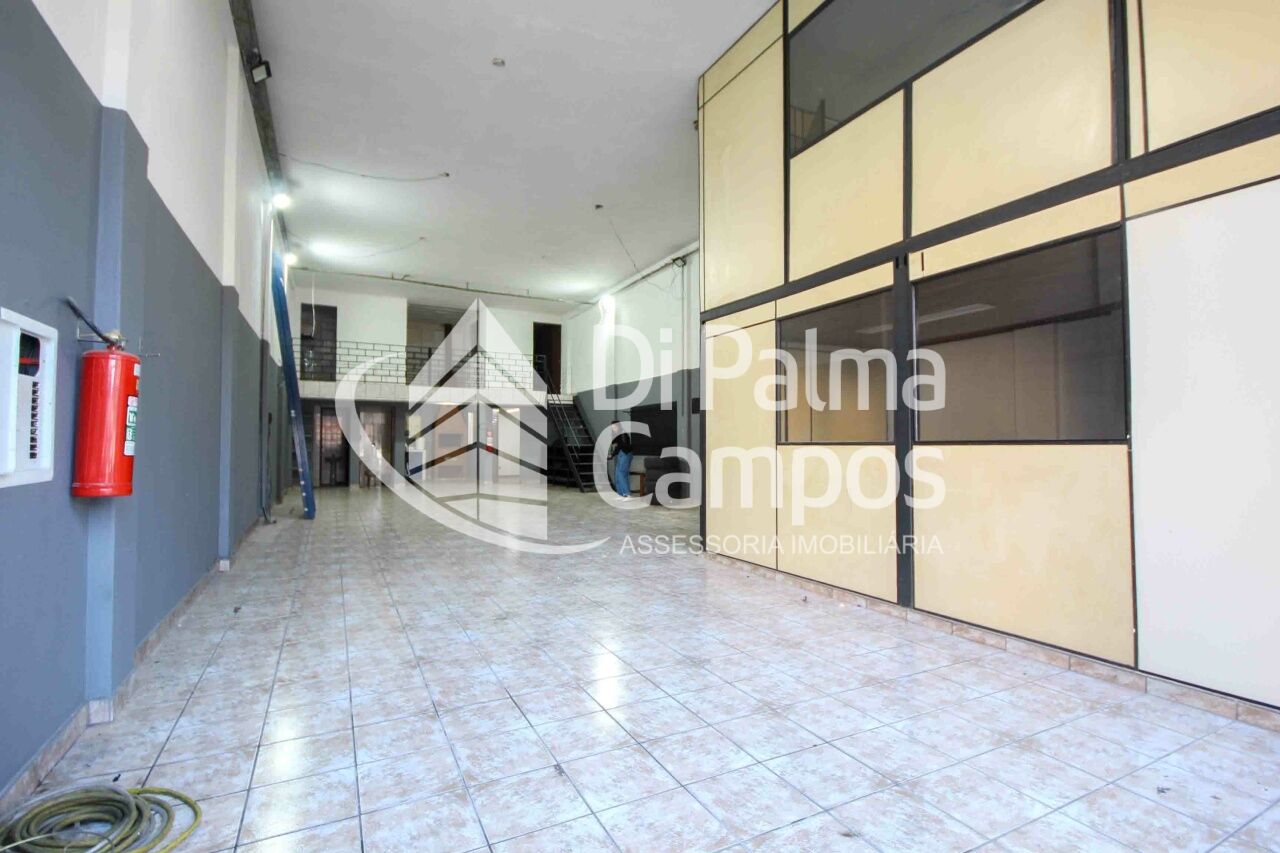 São 180m² de vão livre, pé direito com 5m de altura, trifásico, piso reforçado, mezanino na frente com escritório acesso com escada metálica cor preta.