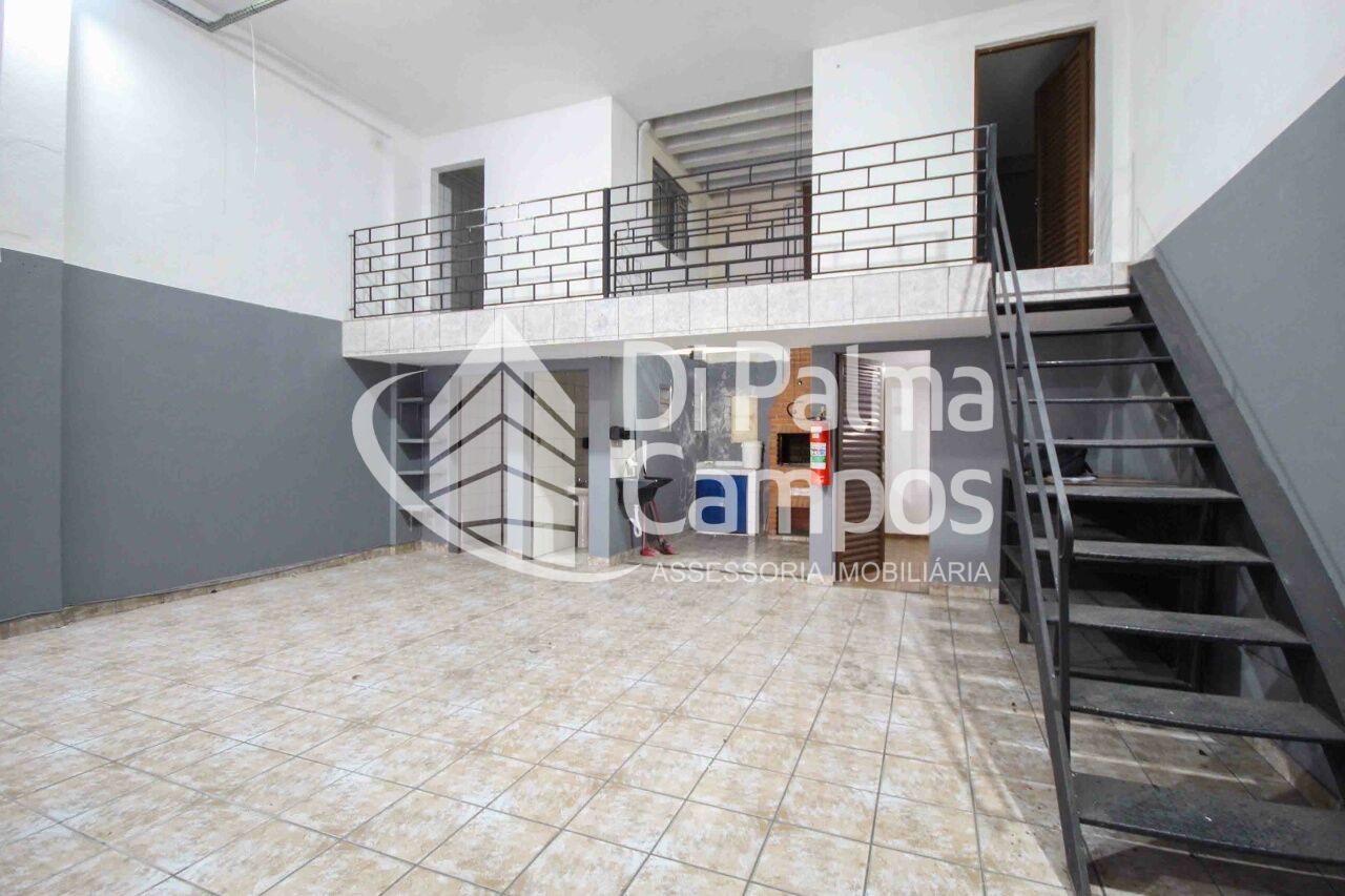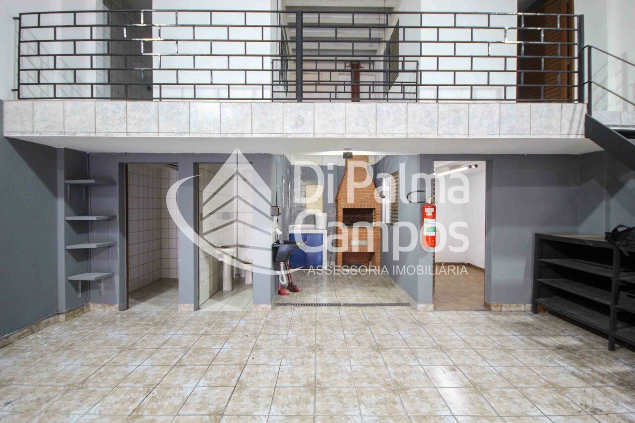 No piso térreo aos fundo do galpão possui: dois banheiros masculino e feminino, um depósito e uma churrasqueira de alvenaria, teto retrátil abre e fecha.