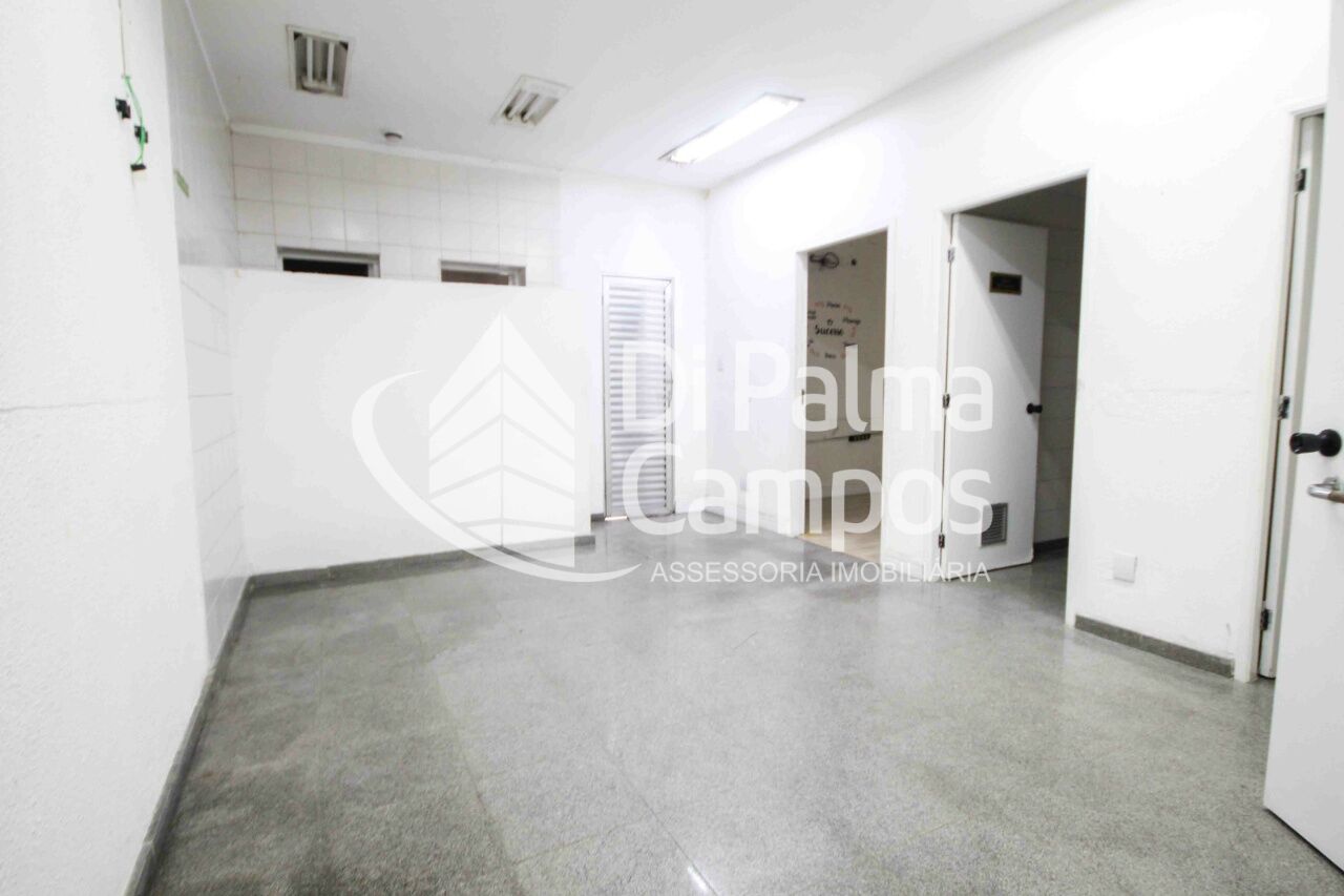 O salão principal tem aproximadamente 241 m², pé direito de 3,4 metros, banheiro e seis salas com divisórias em drywall, que podem ser facilmente remanejadas conforme a necessidade do negócio. Na sequência do imóvel há mais três banheiros, sendo um adaptado para PCD, sala de apoio, cozinha, área de serviço, lavanderia e acesso ao quintal descoberto.