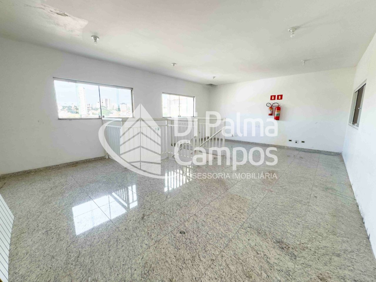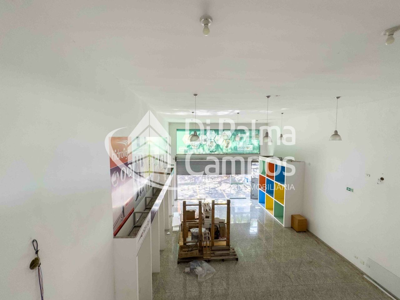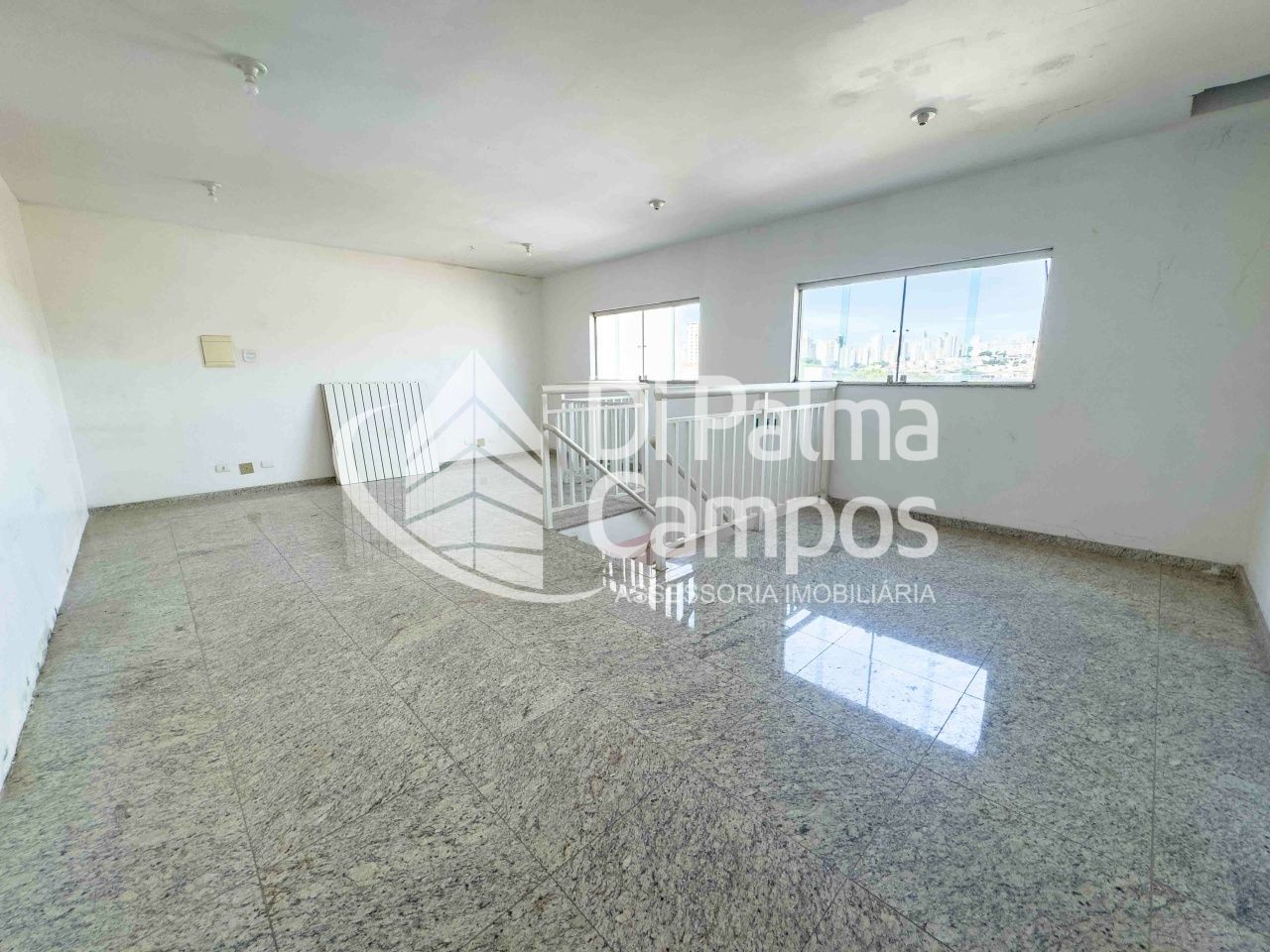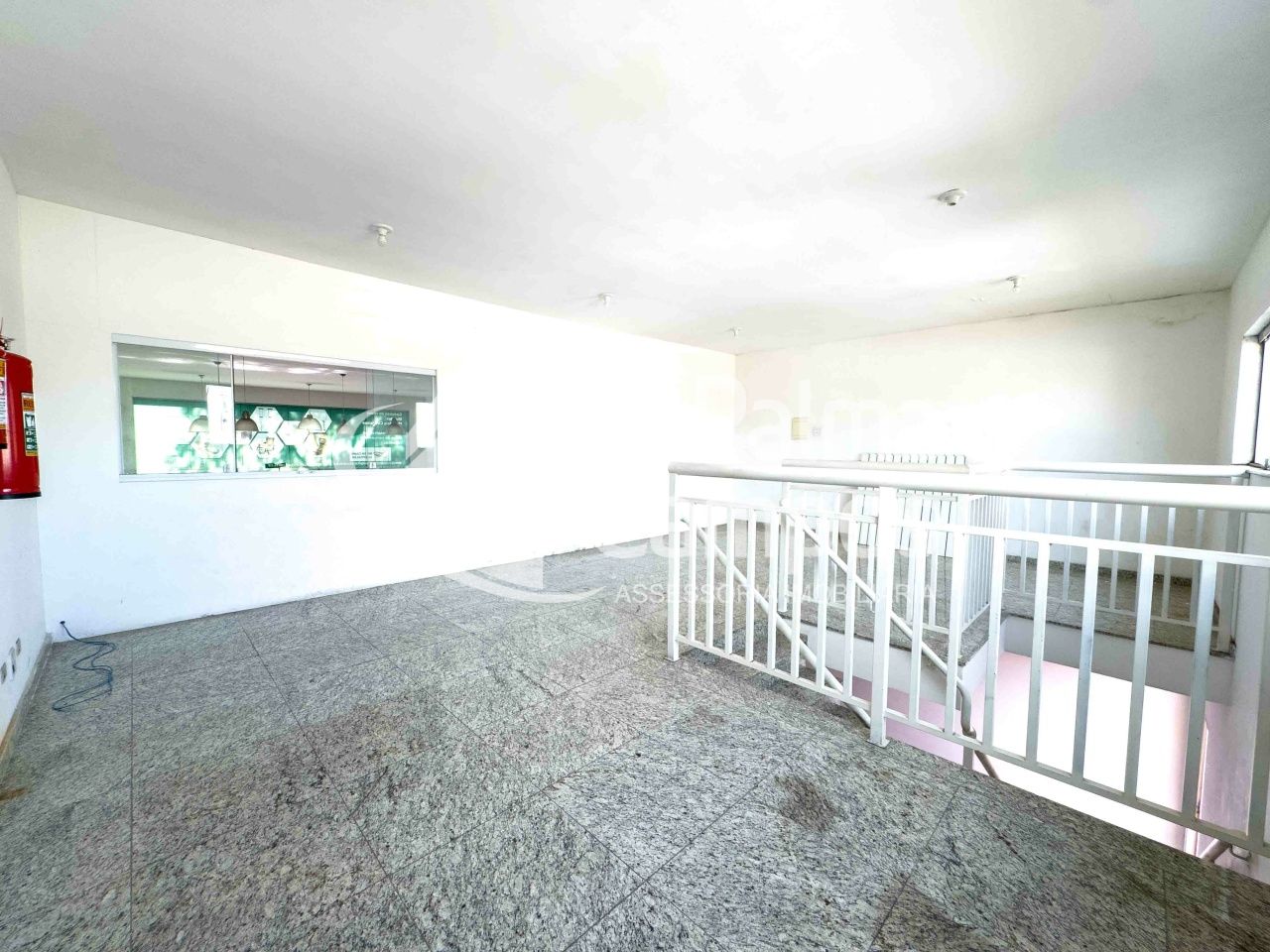 O mezanino é um grande diferencial, perfeito para abrigar área administrativa, sala de gerência, estoque ou suporte operacional, com visão direta para o salão principal. A escada de acesso é bem dimensionada, com guarda-corpo metálico, permitindo integração entre os ambientes sem interferir no fluxo da operação. O imóvel conta ainda com 2 banheiros.