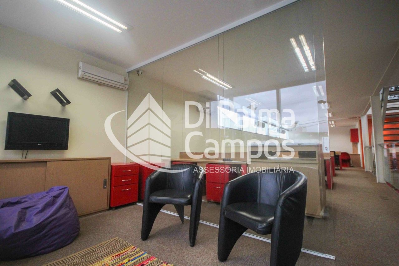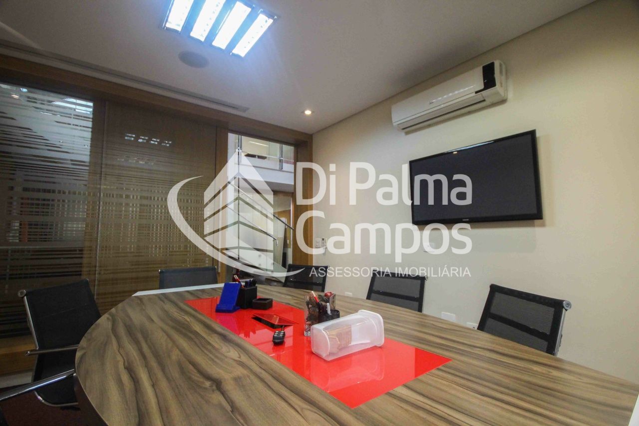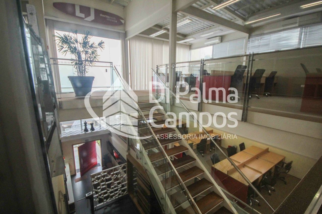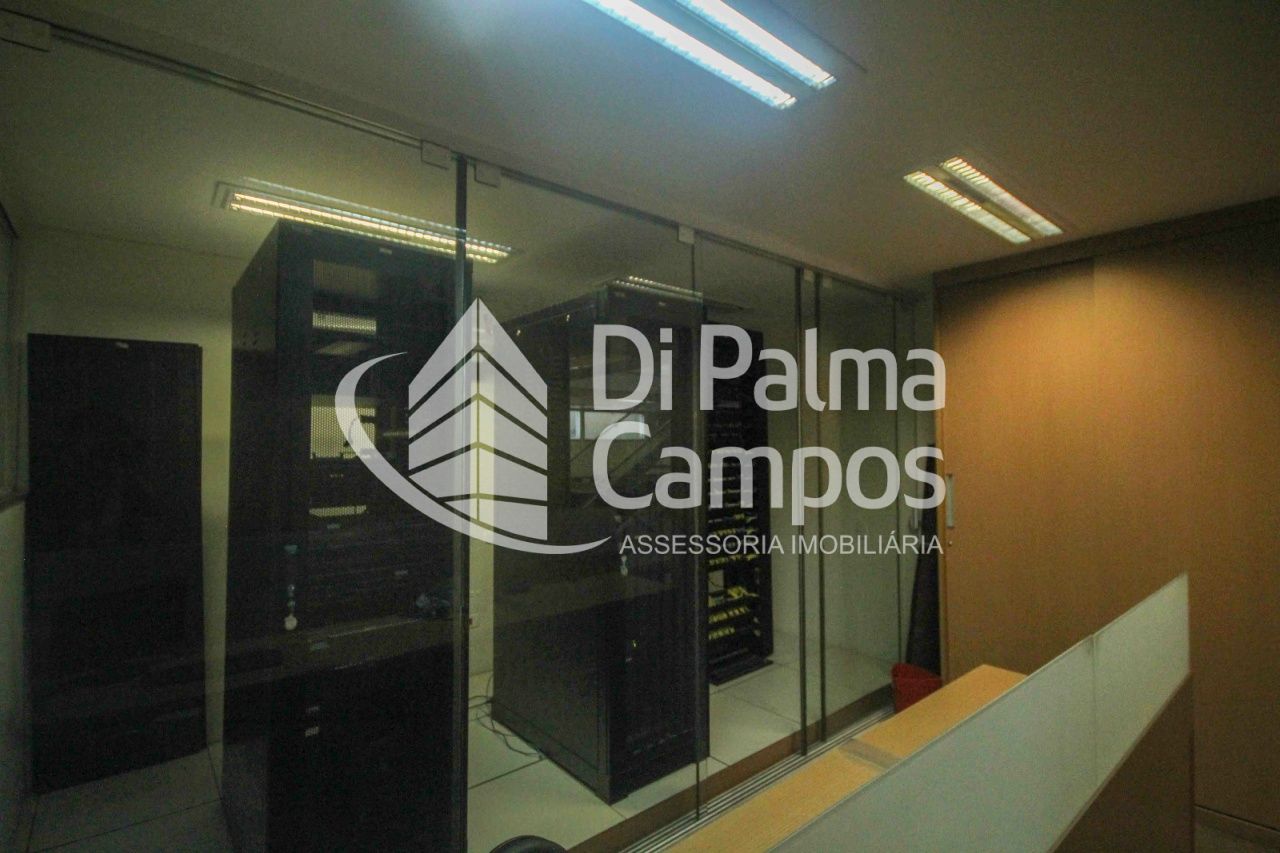 Primeiro Andar - Salas definidas: (01 sala de diretoria com banheiro privativo, 01 sala ADM/Financeiro com 5 baias e amplos armários embutidos, 01 sala CPD com piso elevado, 3 racks com toda infra de cabeamento cat5 e cat6 conectada com todas as baias, climatizadas com dois aparelhos de ar condicionado e amplos armários, do outro lado, amplo espaço, climatizado, com sala de relax e mesas em baias, todas cabeadas para dados e telefonia.