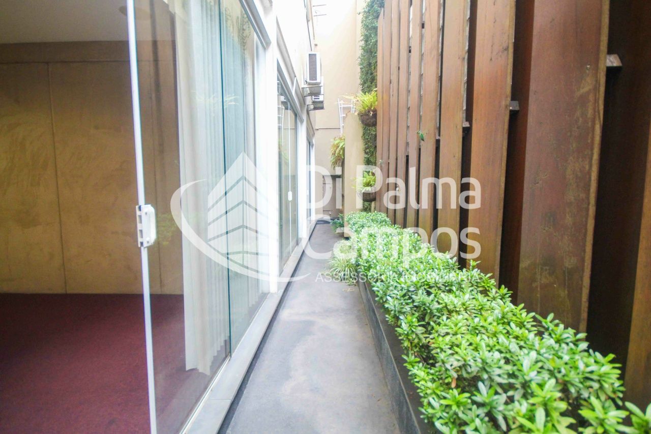 Térreo: 04 Salas de Reunião: 01 (uma) sala Master com 14 lugares, projeção embutida e parede acústica removível para ampliação do espaço, 01(uma) sala com 08 lugares e projeção embutida, 01(uma) sala com 10 lugares com revestimento para reunião agile, corredor lateral das três salas de reunião com decoração e jardim de inverno, 02 banheiros elegantes com hall/lavabo. Ante sala-recepção separada para portadores externos com banheiro e passagens interna de documentos.