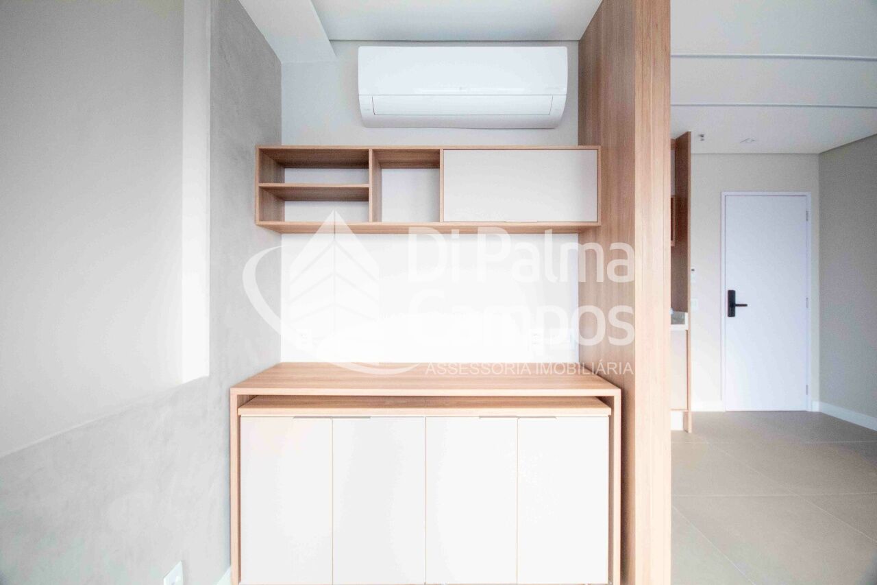 Esta sala comercial é perfeita para quem busca um espaço bem planejado. Com 36m² de área útil, o ambiente é amplo e revestido em piso de porcelanato, conta com ar-condicionado já instalado, armários planejados que otimizam a organização e um banheiro privativo, com acabamento de qualidade. A sala ainda dispõe de sacada com vista livre, proporcionando ventilação natural e um toque diferenciado ao ambiente.