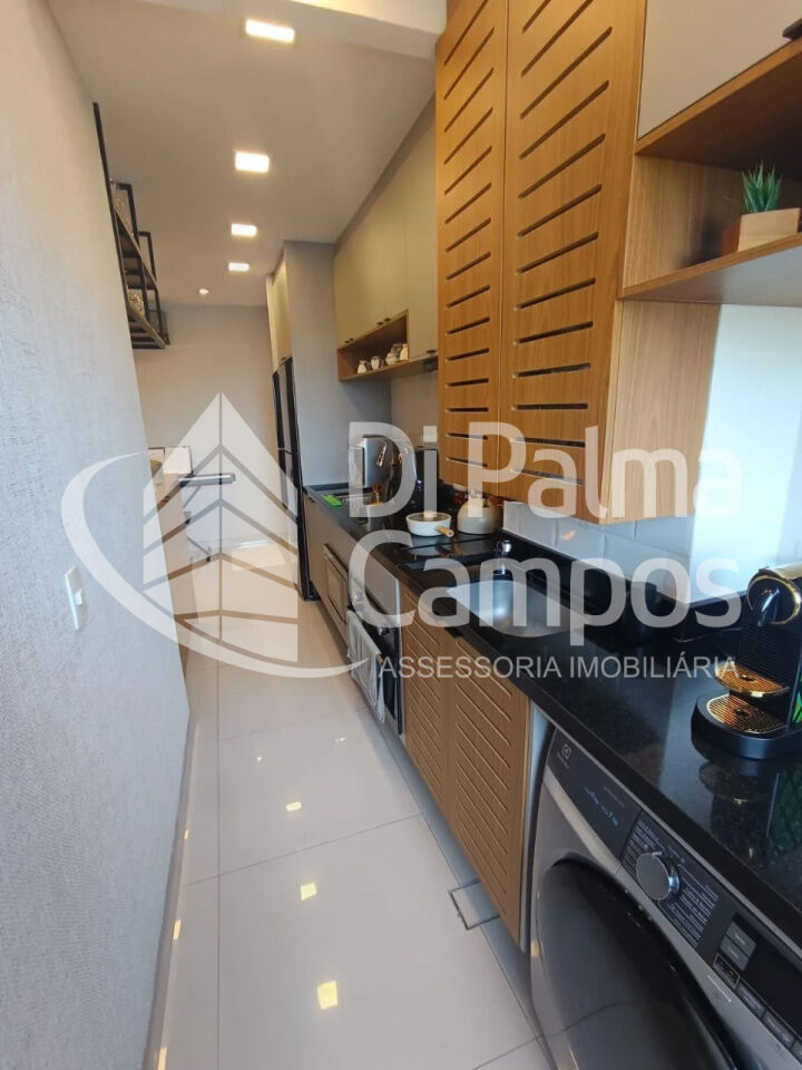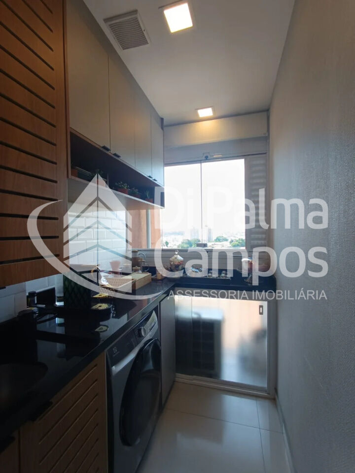A cozinha conta com armários planejados, oferecendo praticidade no dia a dia. O apartamento dispõe de 1 quarto com armários e ar-condicionado, além de 1 banheiro bem distribuído. A área de serviço é independente e o imóvel possui aquecimento a gás, agregando conforto ao uso diário.