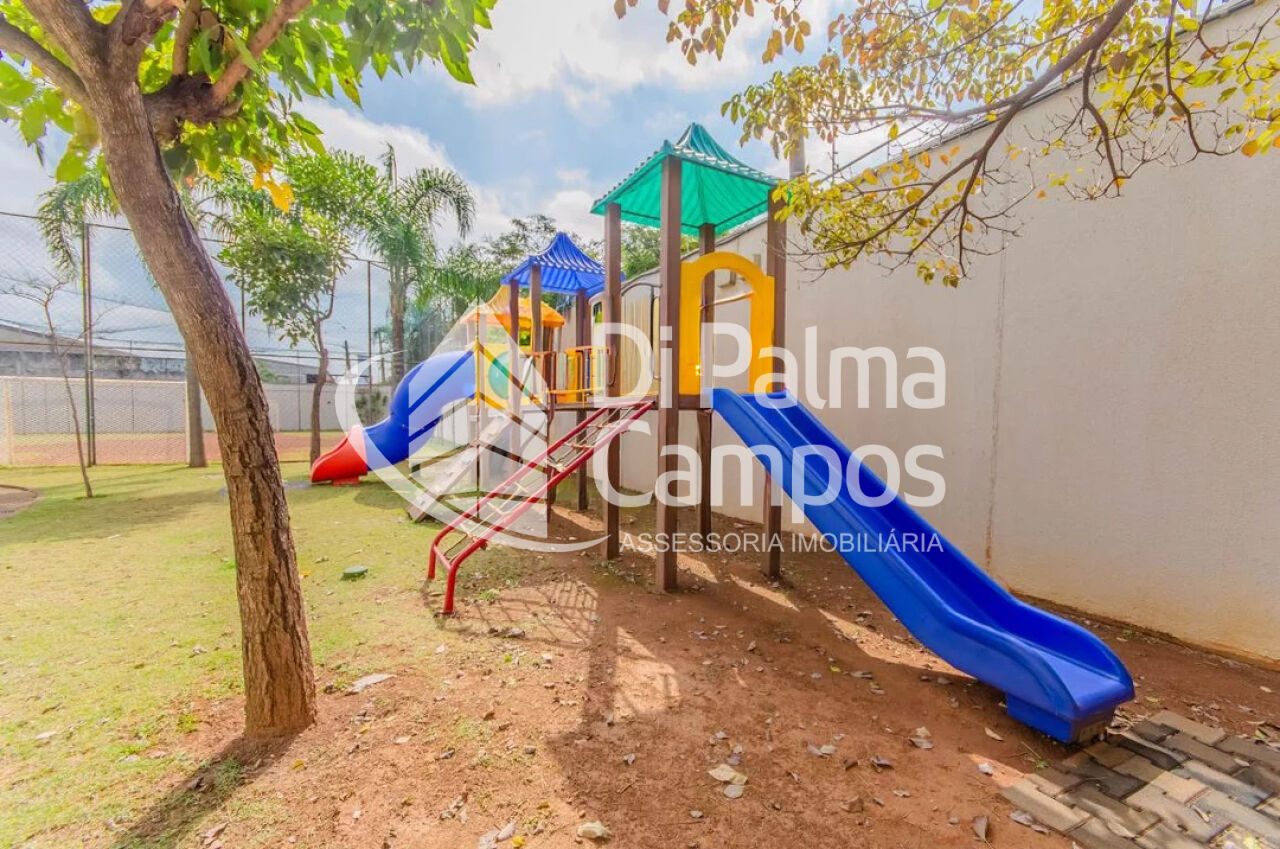 O condomínio apresenta uma estrutura completa com elevador, academia, piscina, quadra esportiva, salão de festas, churrasqueira, espaço pet, salão de jogos, playground, brinquedoteca, bicicletário e área comum com espaço gourmet.