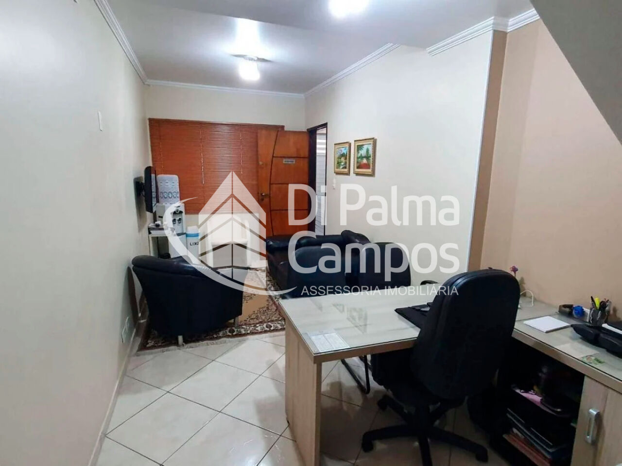 No piso inferior, atualmente adaptado para escritório, há sala utilizada como recepção, cozinha integrada ao ambiente de trabalho, 1 quarto, 1 banheiro, quintal com lavanderia e corredor lateral com fechamento em vidro, garantindo boa circulação e iluminação. No piso superior, o imóvel dispõe de sala com corredor em formato de L, 1 quarto amplo, 1 banheiro, cozinha e lavanderia, permitindo total independência entre os pavimentos.