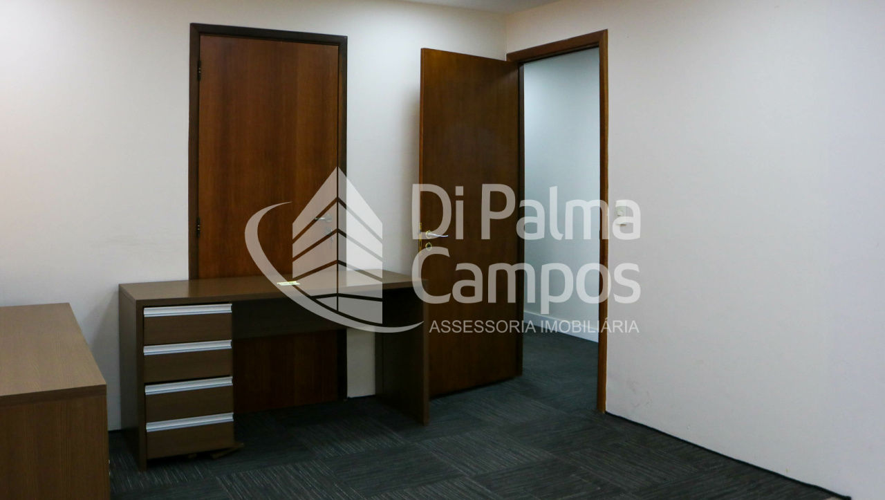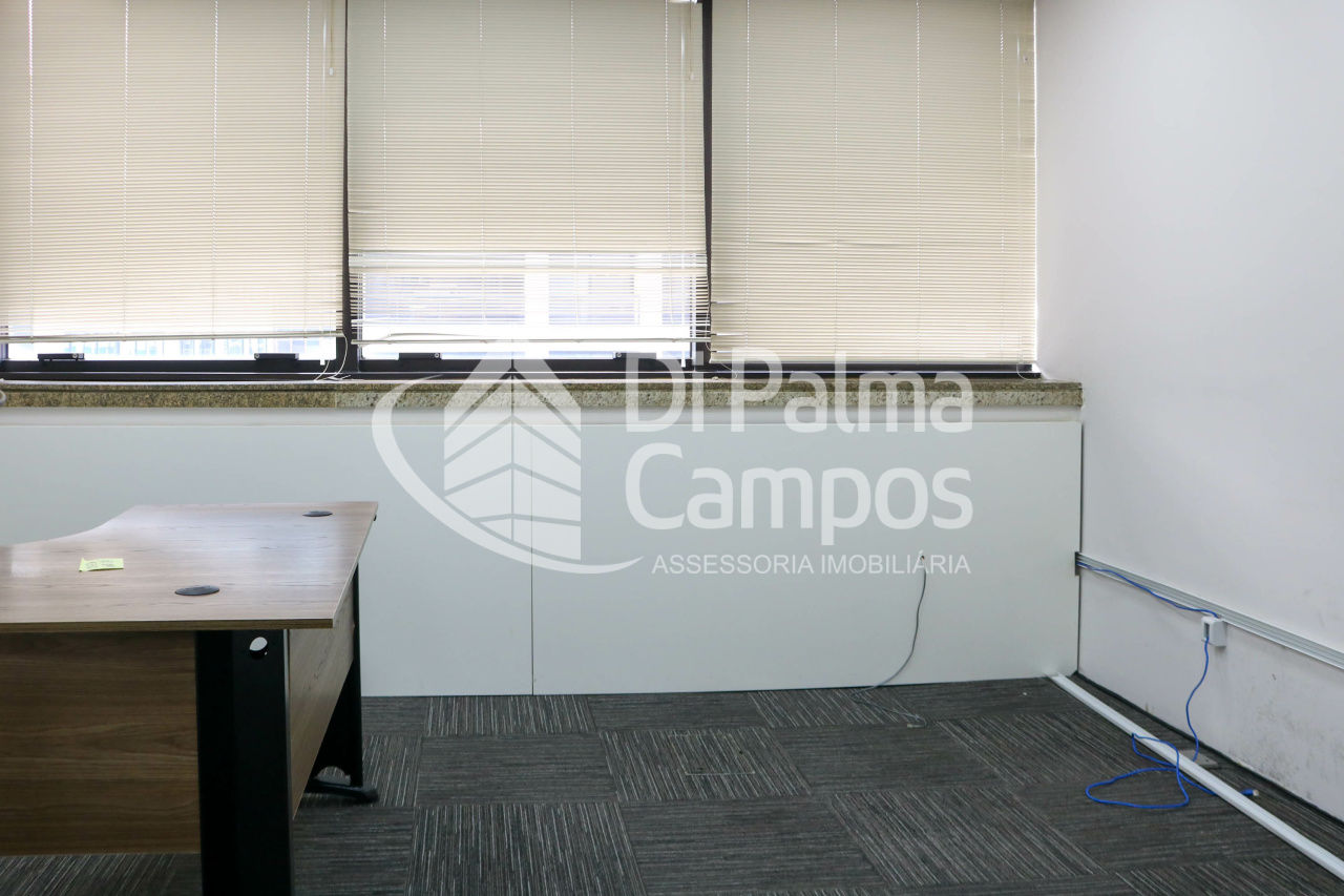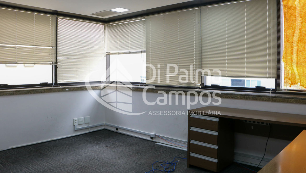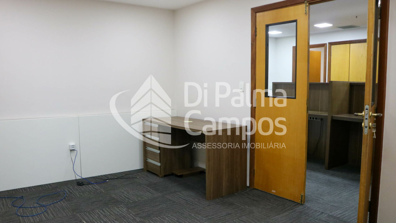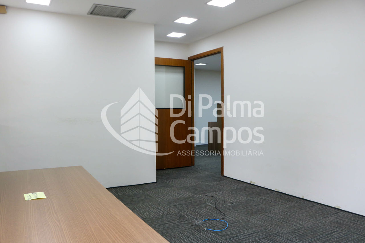 Disponível para locação, o conjunto conta com 164 m² de área útil, distribuídos em 8 salas que permitem a separação de setores, salas de reunião ou atendimento. O espaço apresenta piso em carpete modular, forro com iluminação embutida, ar-condicionado e divisórias já instaladas, além de marcenaria em alguns ambientes que contribui para a organização.