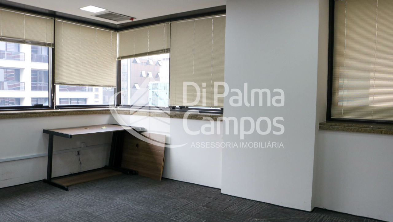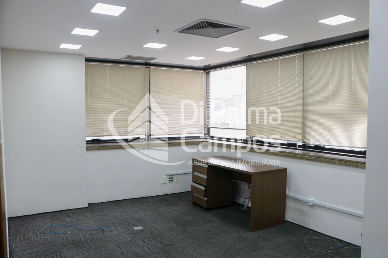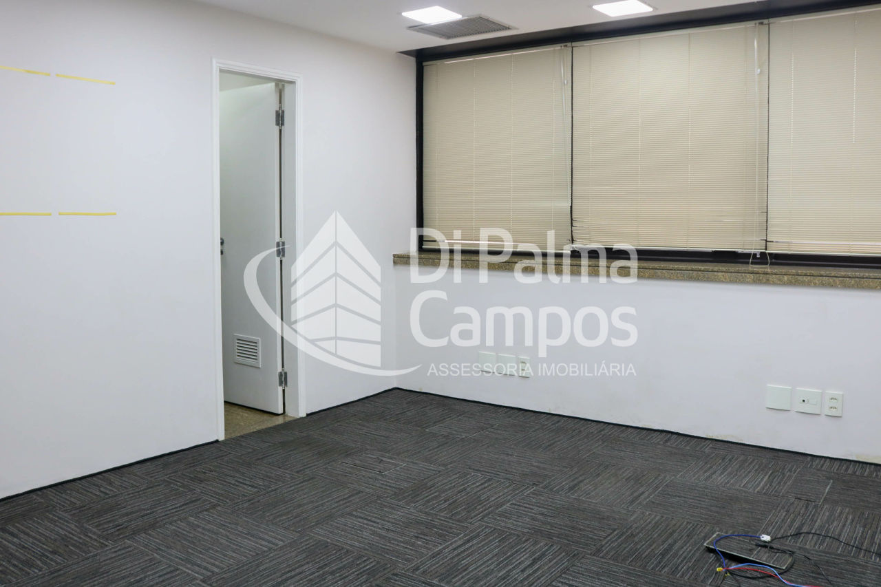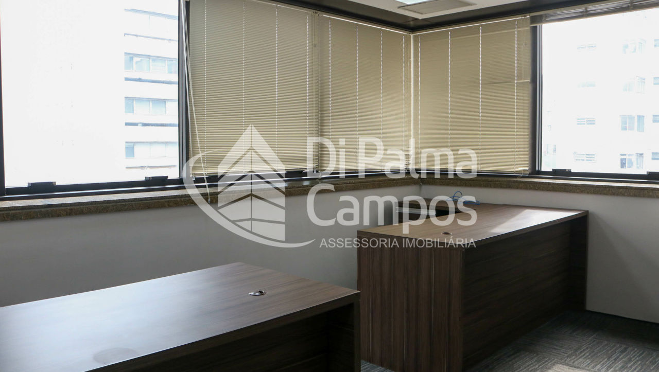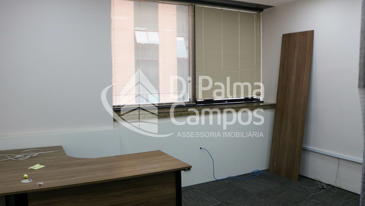 Disponível para locação, o conjunto conta com 164 m² de área útil, distribuídos em 8 salas que permitem a separação de setores, salas de reunião ou atendimento. O espaço apresenta piso em carpete modular, forro com iluminação embutida, ar-condicionado e divisórias já instaladas, além de marcenaria em alguns ambientes que contribui para a organização.